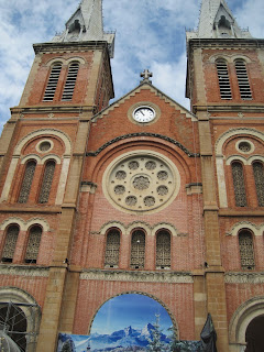 郵局斜對面一步之遙是另一個歷史地標,聖母瑪利亞雕像後的「西貢聖母聖殿主教座堂Notre-Dame Cathedral